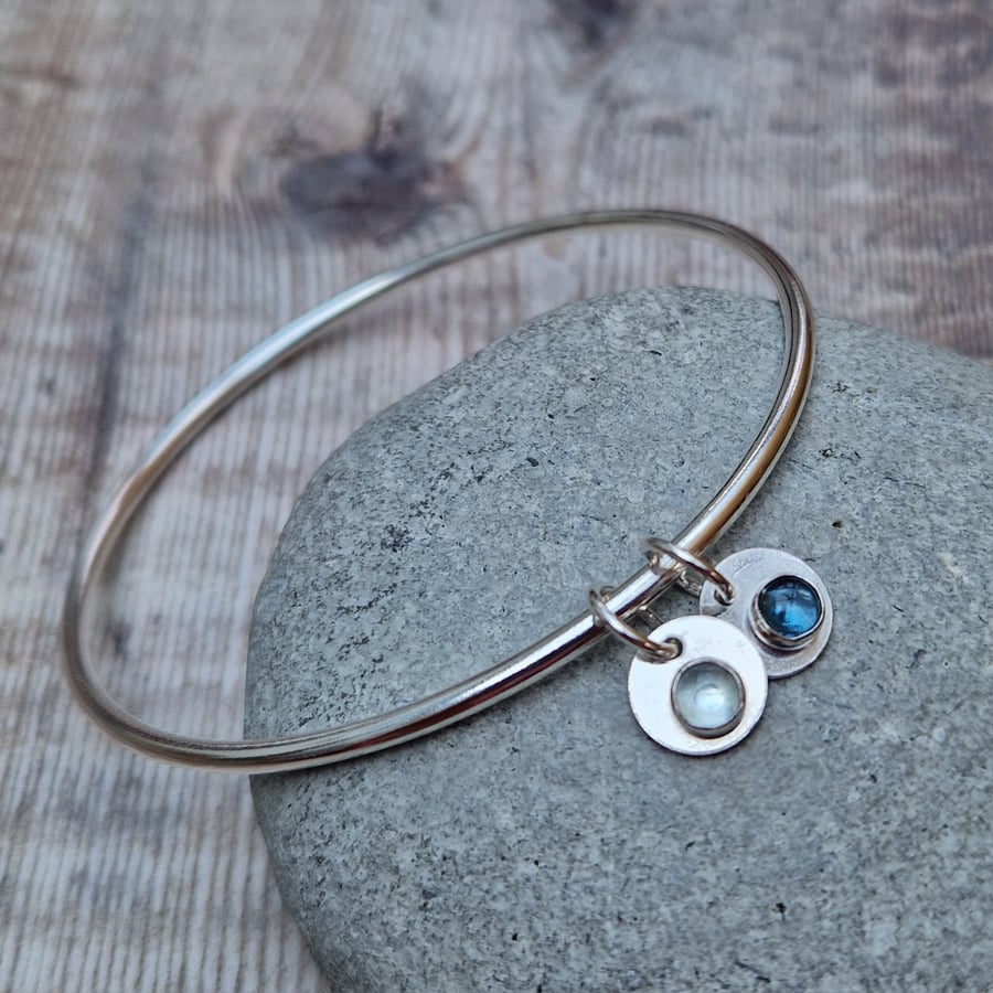 Sterling Silver Round Bangle with Aquamarine an Folksy Very well made.