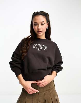 Nike varsity oversized crop sweatshirt in velvet brown Very well made.
