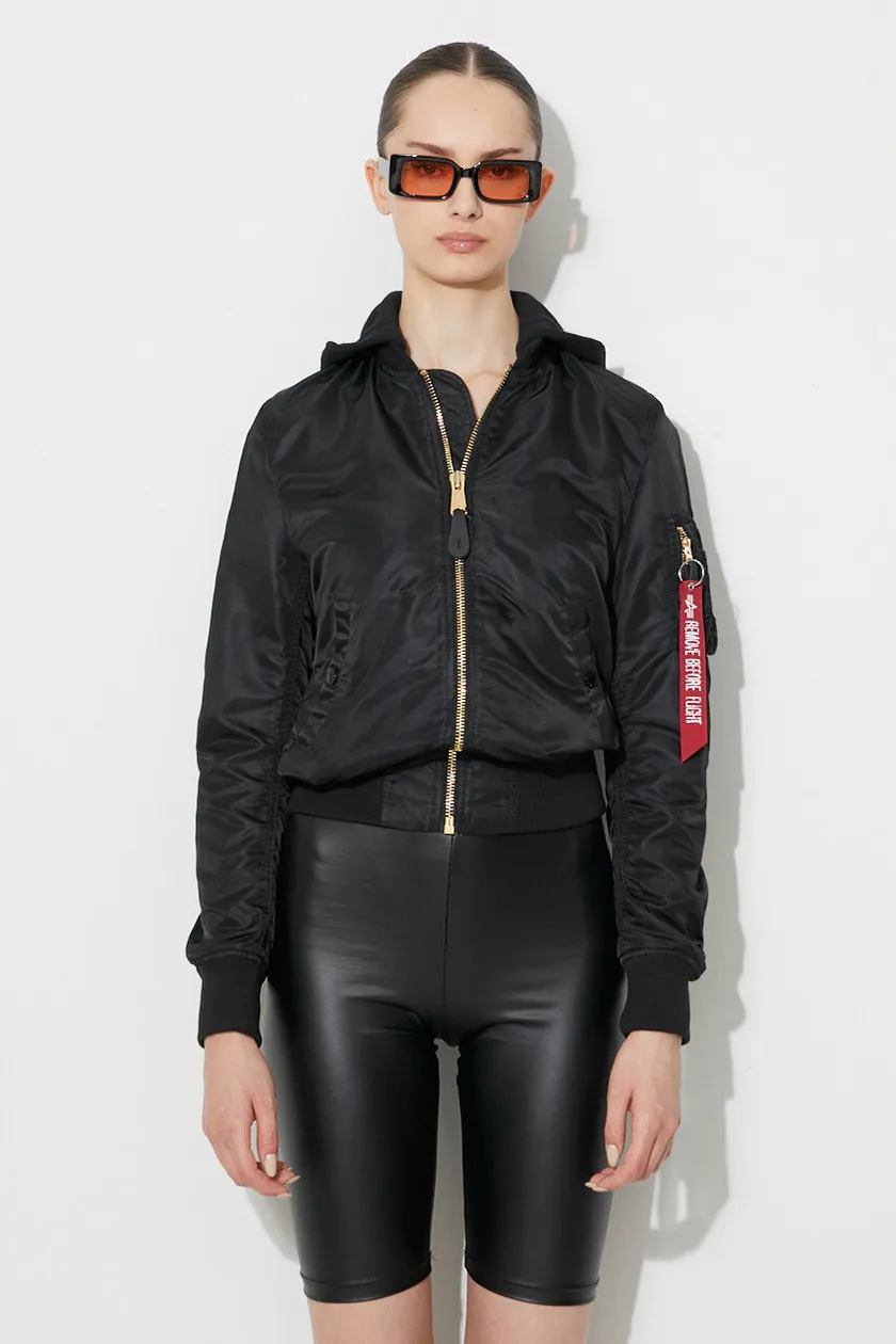 Alpha Industries bomber jacket women s black color buy on PRM Very well made.