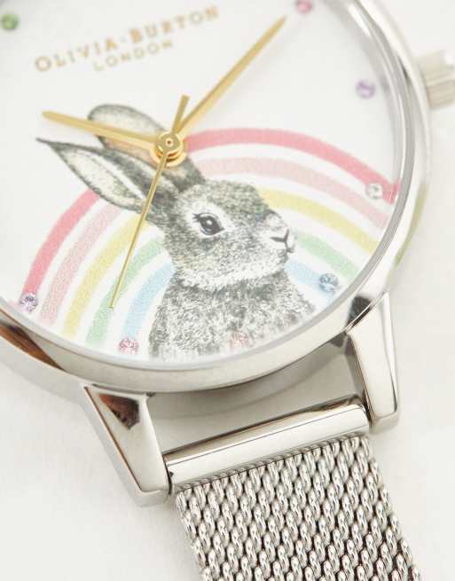 Olivia Burton Women s Illustrated Animals Rainbow Bunny Mesh Watch Gold Silver Very well made.