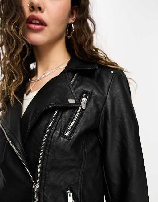 BNWT Ladies ONLY Black Faux Leather Biker Jacket Size Uk 10 Eu 38 Very well made.