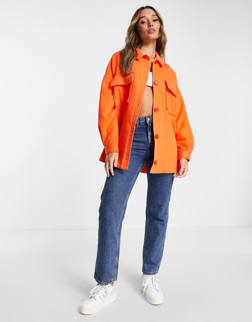 Only Brushed Fleece Shacket In Orange New Mode Boutique Very well made.