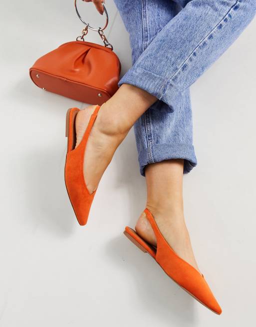 ASOS DESIGN Wide Fit Lacy slingback ballet flats in orange Very well made.