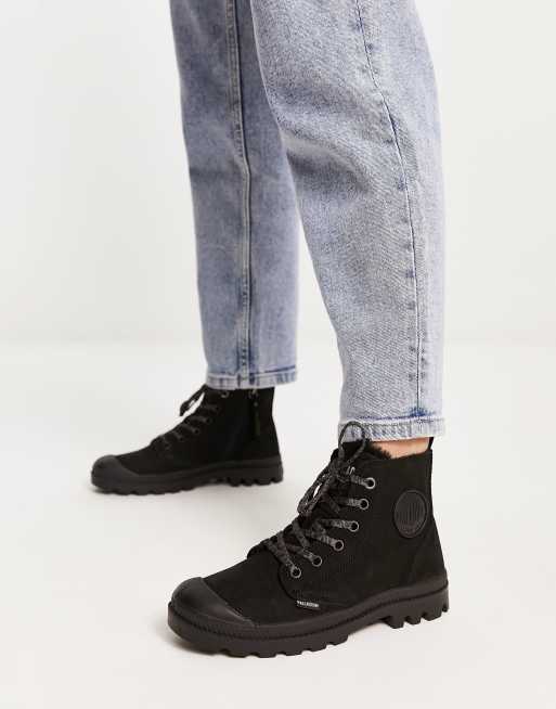 Palladium Pampa hi zip fur lined leather boots in black leather Very well made.