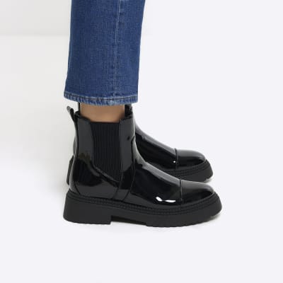 River Island Girls Wide Fit Patent Chelsea Boots Black very Very well made.