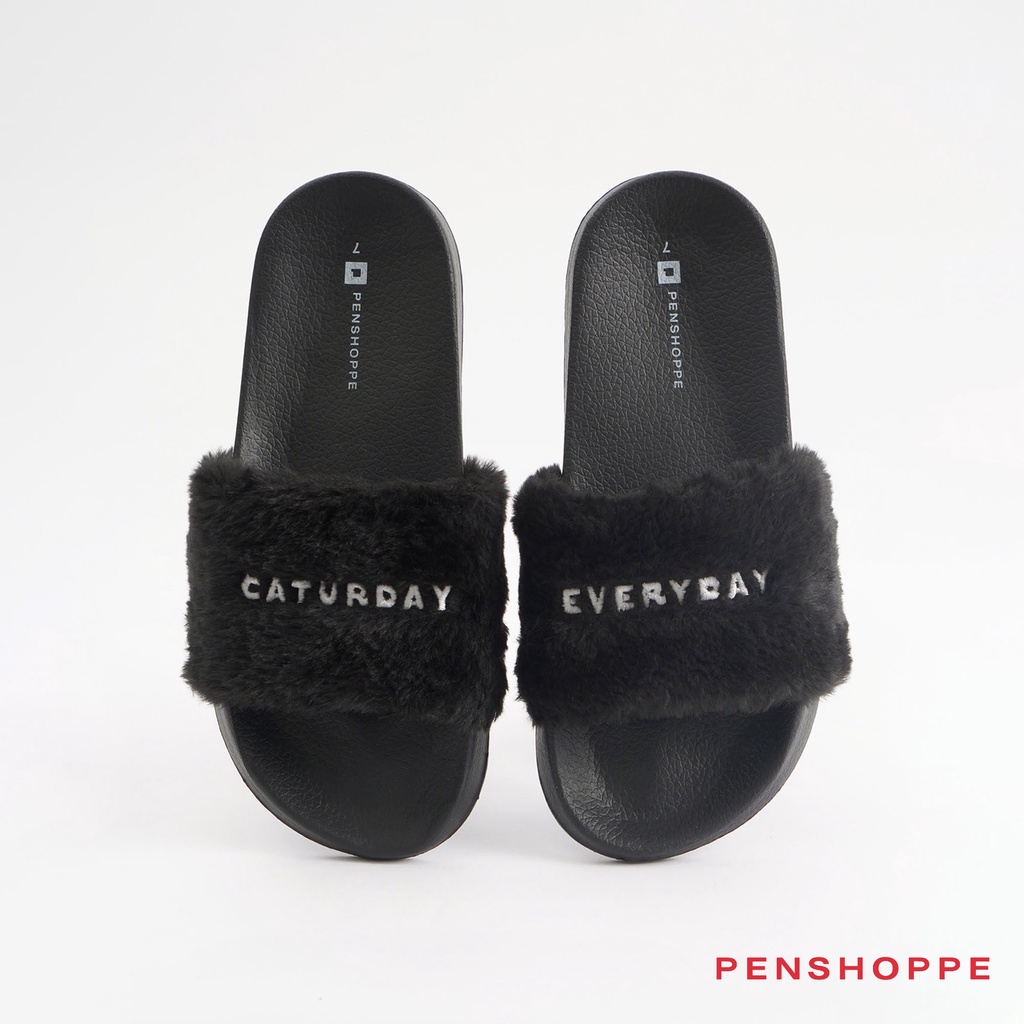 Penshoppe Fur Strap Slides Slippers For Women Black Very well made.