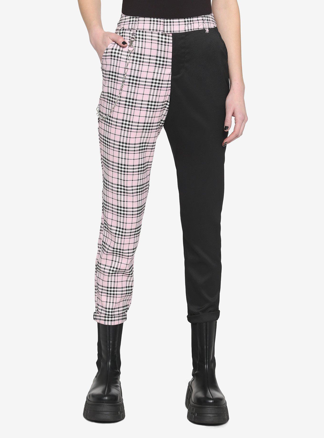 Black Pink Plaid Split Chain Pants Very well made.