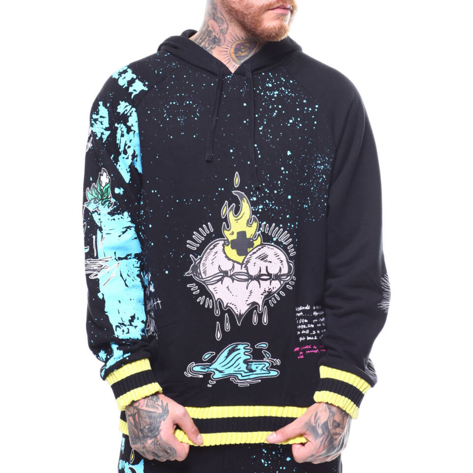 PINK DOLPHIN DRIP DRIP SACRED HEART EMBRIODERED PRINT HOODIE IN BLUE SIZE XXL Very well made.