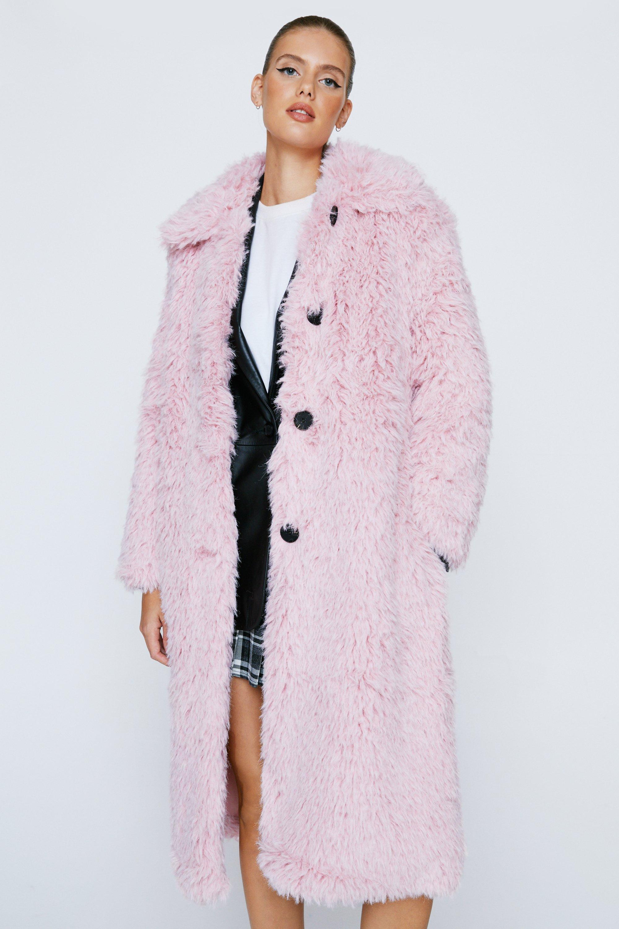 TOPSHOP Faux Fur Longline Coat in Pink Lyst Very well made.