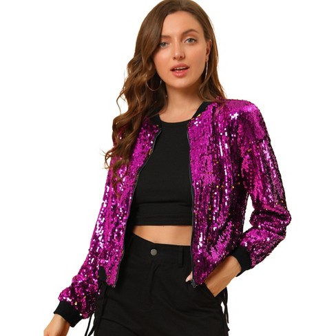 Allegra K Women s Sequin Sparkle Long Sleeve Zipper Bomber Jacket Very well made.