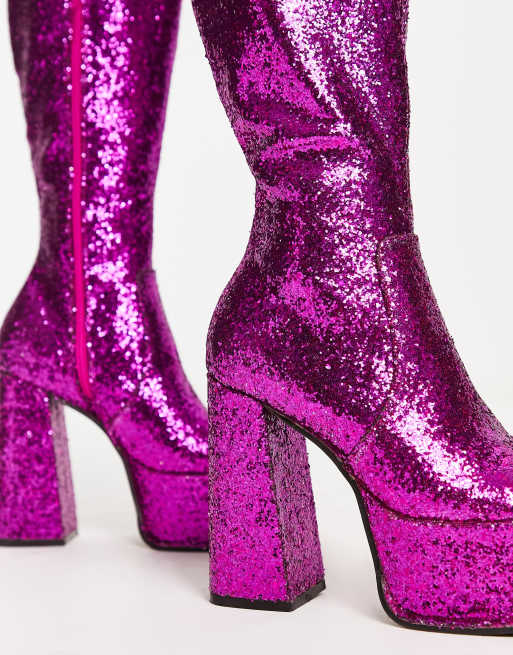 Shellys London Kia platform knee boots in pink glitter Very well made.