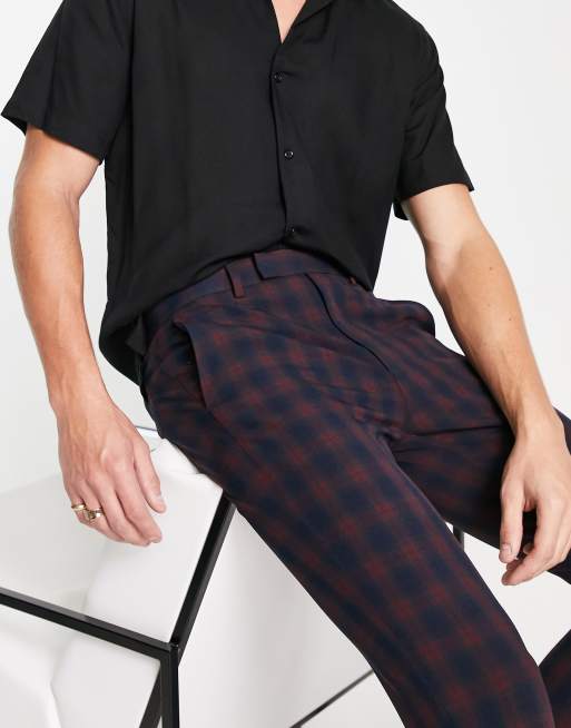 ASOS DESIGN smart super skinny pants in burgundy tartan plaid Very well made.