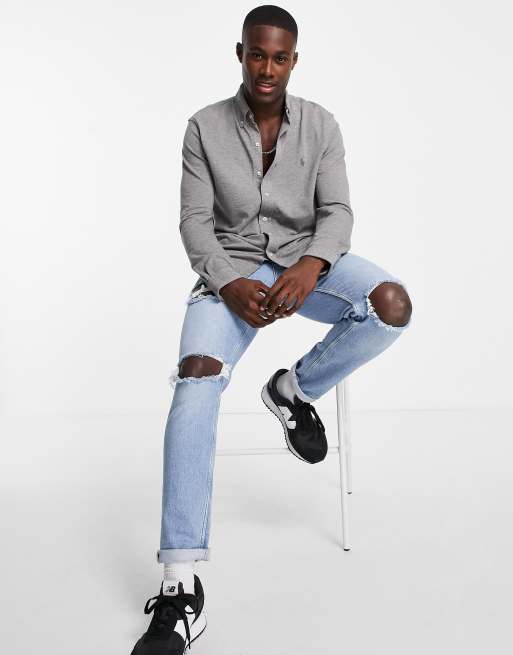 Polo Ralph Lauren icon logo slim fit pique shirt buttondown in grey marl Very well made.