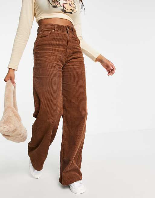 Pull Bear Pantaloni a zampa a vita alta in velluto a coste colore marrone Very well made.