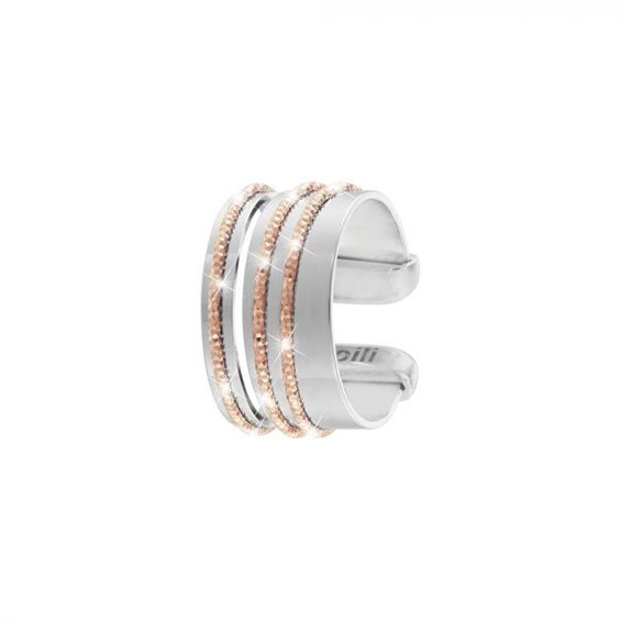 Anello Stroili Oro in Metallo Oro Rosa e Cristalli a Forma di Very well made.