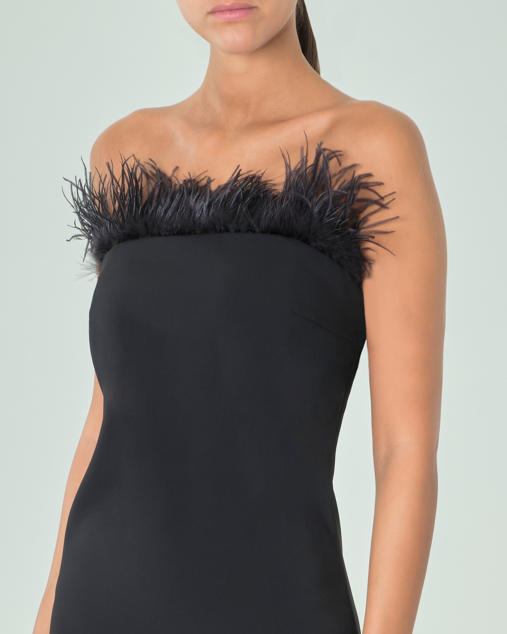 Tubino nero corto con applicazioni in piume tono su tono lungo lo Very well made.