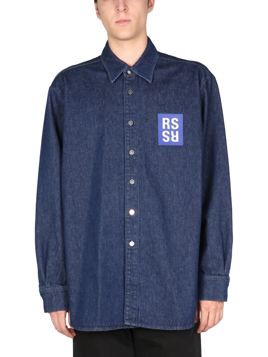 Buy Raf Simons men navy blue logo denim shirt jacket for 1 267 Very well made.