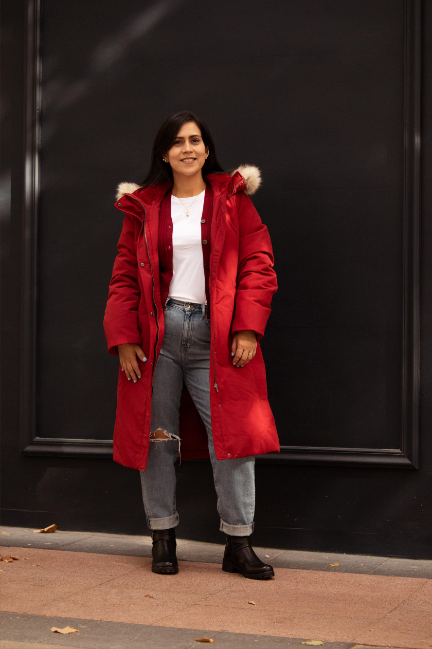 Look Red Parka for a Snow Day Dia de Neve com Casaco Parka Very well made.