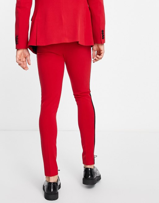 ASOS DESIGN super skinny tuxedo pants in red with satin side stripe Very well made.