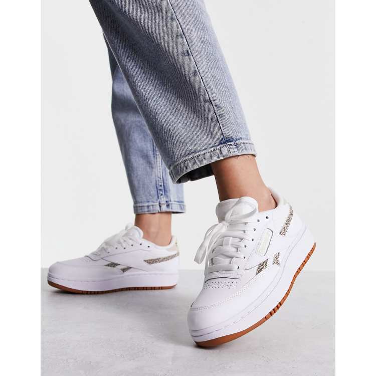 Reebok club c double sneaker in white and light leopard exclusive to ASOS WHITE Very well made.