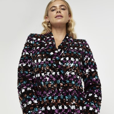 River Island Black Sequin Open Blazer Jacket Size XS BNWT Very well made.