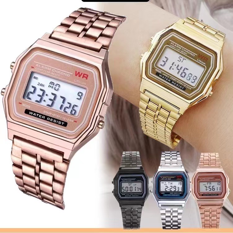 CASIO vintage rosegold rose gold silver Men Women Couple Jewelry Very well made.