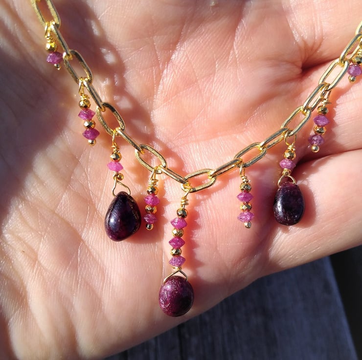 Ruby drop gold necklace online designs