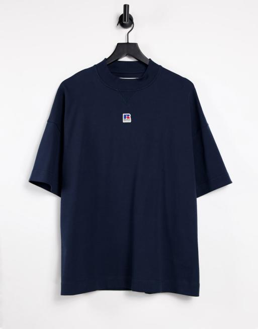 Boss x Russell Athletic boxy turtle neck t shirt in navy Very well made.
