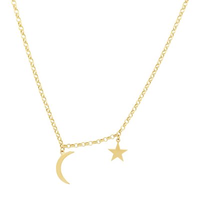 14K Yellow Gold Moon and Star Dangle Necklace 16 18 Very well made.