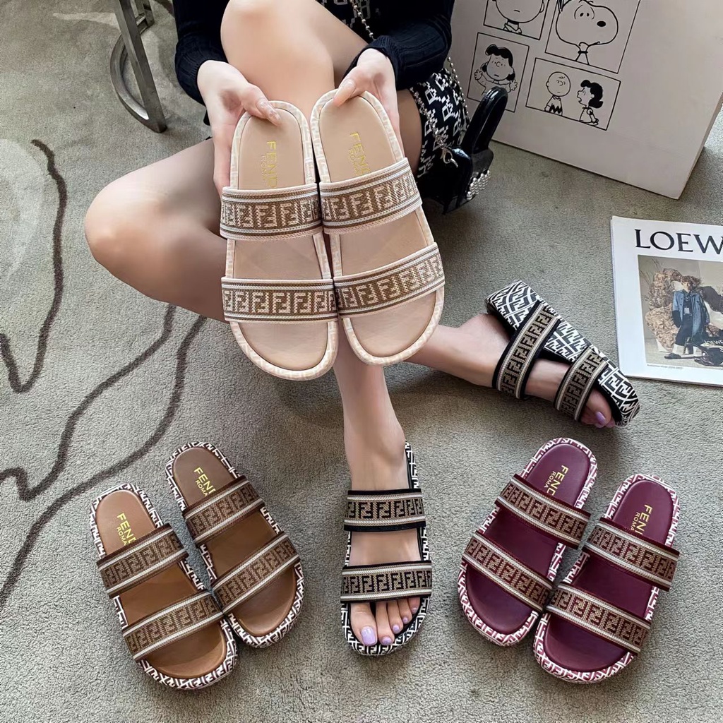Fashion Luxury Women Two Cross Strap Thick Slide Strap Wedge Flat Very well made.