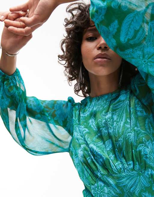 Topshop long sleeve satin maxi dress with bust seam in green Very well made.