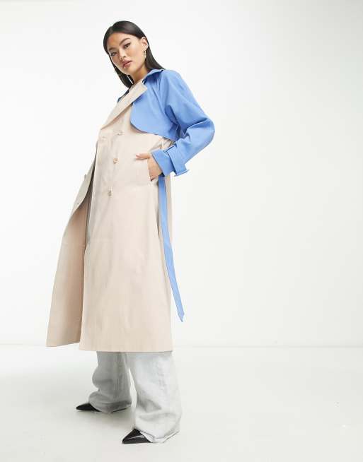 Something New X Madeleine Pedersen colourblock mix trench coat in cream and blue Very well made.
