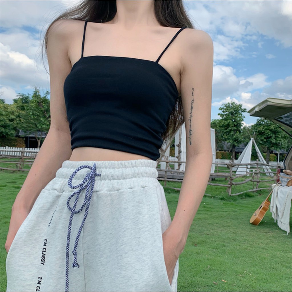 Spaghetti Strap Crop Top Basic CropTop Sando for fashion woman Very well made.