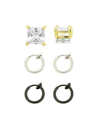 Multi Pack Square CZ Magnetic Fake Studs and Fake Hoop Earrings Very well made.