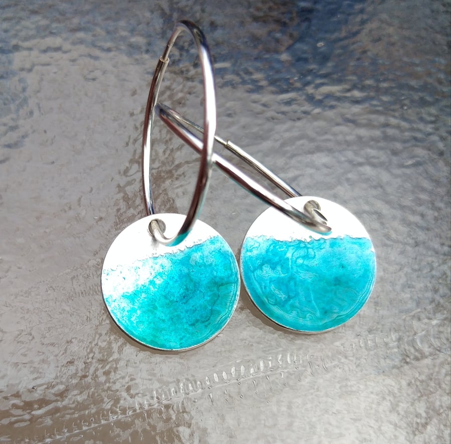 D For Diamond Silver And White Enamel Flower Stud Earrings Very well made.