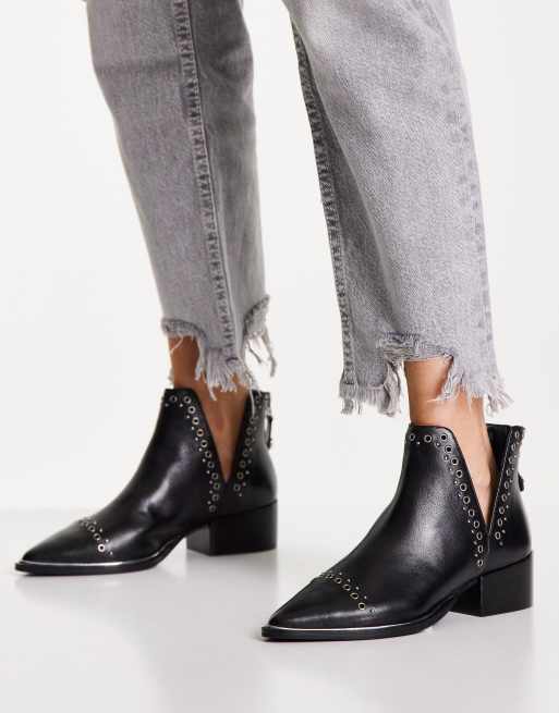 Steve Madden epyr cut out heeled ankle boots in black leather Very well made.