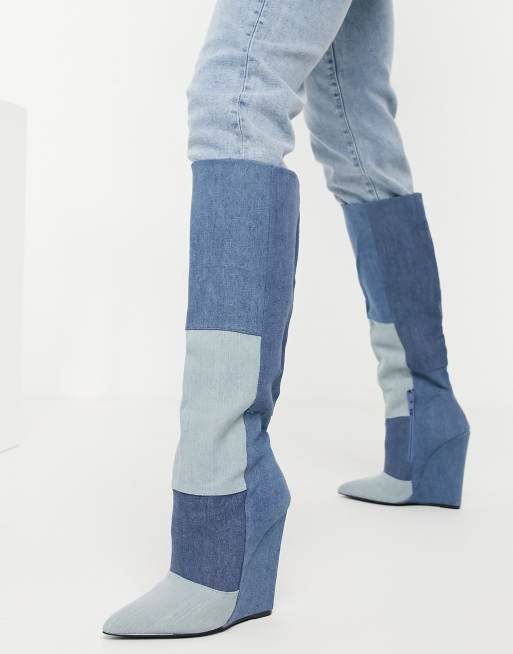 ASOS DESIGN Cody Stivali al ginocchio con zeppa blu denim ASOS Very well made.