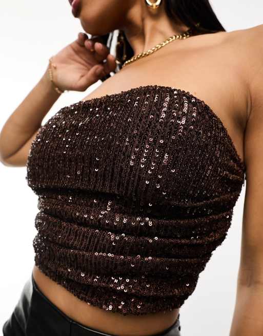 ASOS DESIGN sequin strapless corset top in chocolate Very well made.