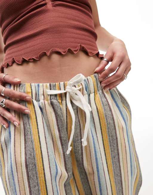 Topshop co ord stripe linen blend tie waist trouser in beige Very well made.