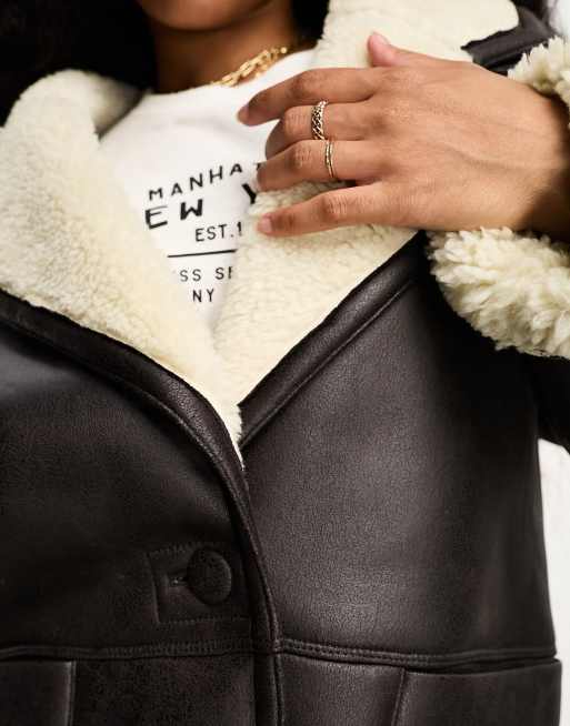 ASOS DESIGN Petite faux suede car coat in chocolate Very well made.