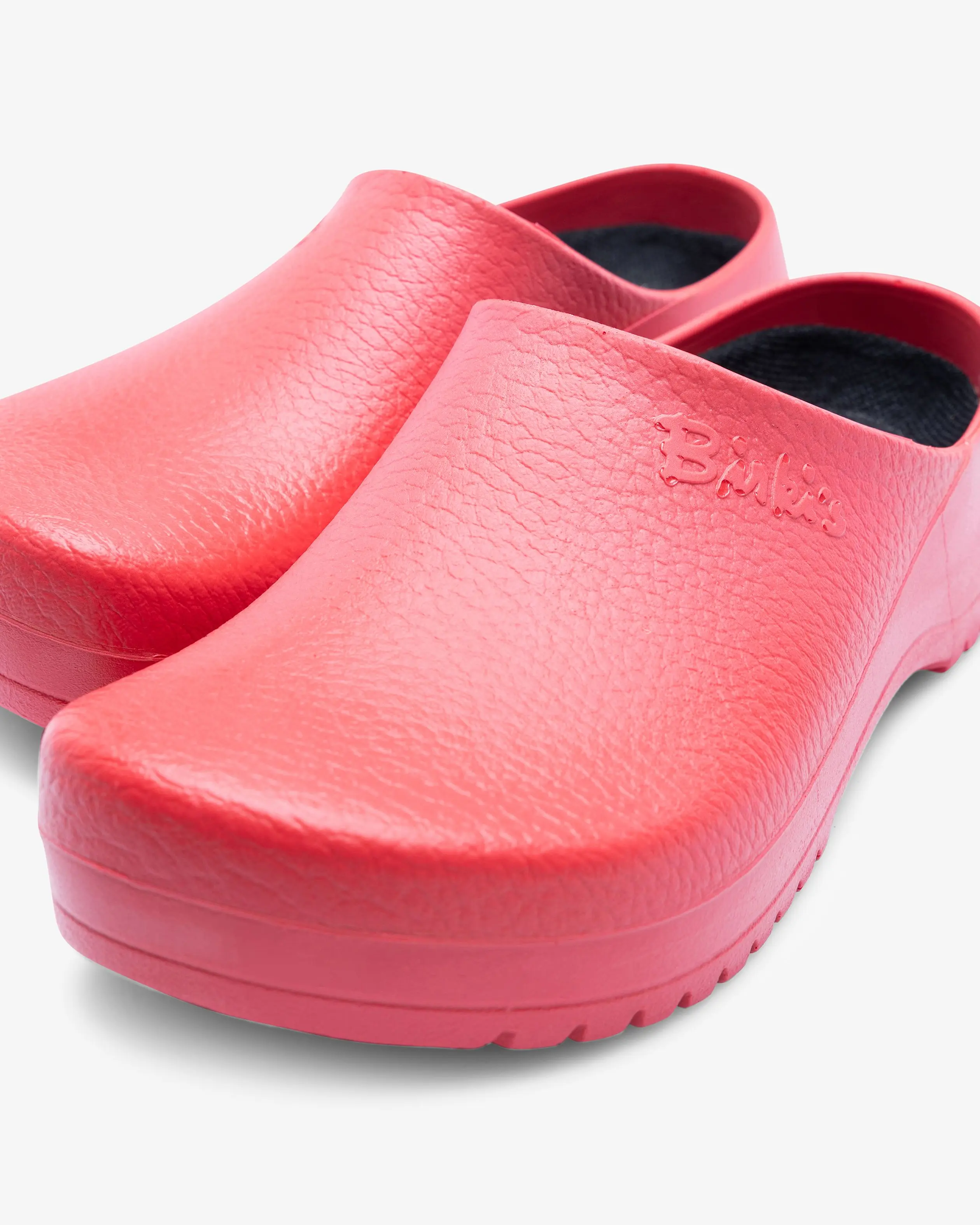 Super Birki Red Pu Clogs by Birkenstock Shop Online at Mountfords Very well made.