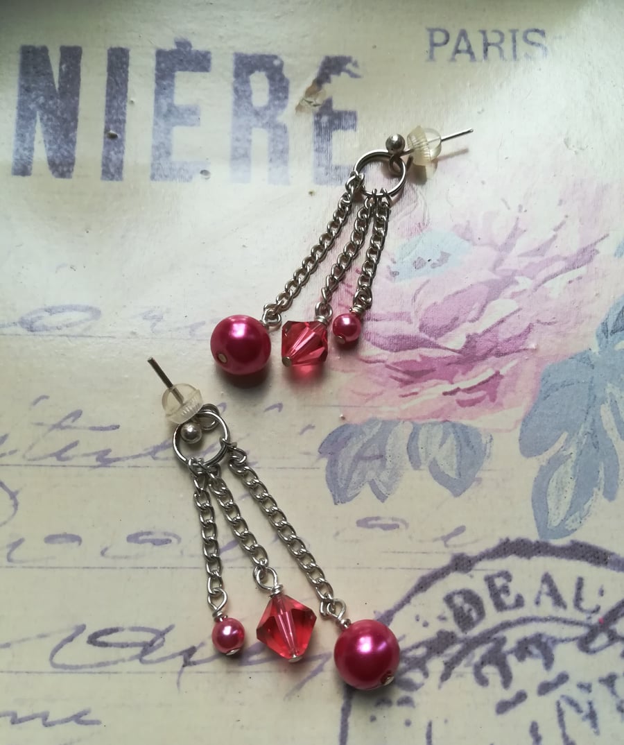 Swarovski Ruby earrings sparkly red dangle earrings in gold Very well made.
