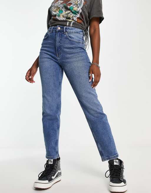 Stradivarius Mom jeans slim elasticizzati in cotone blu medio Very well made.