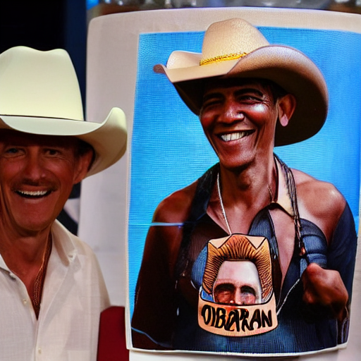 prompthunt a man wearing a very tall cowboy hat with a big grin Very well made.