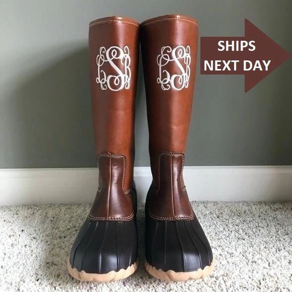FREE SHIPPING Monogram Duck Boots Tall Monogrammed Duck Boots Very well made.
