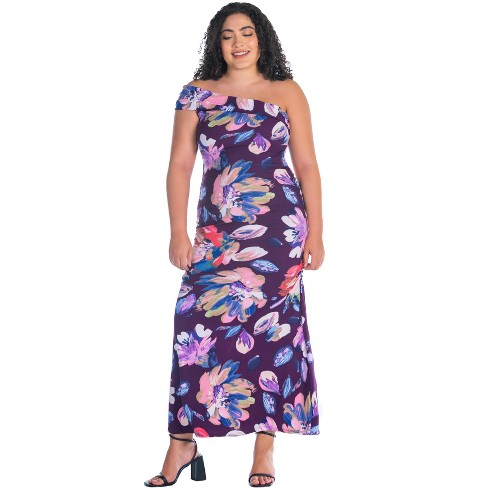 Womens Plus Size Purple Floral One Shoulder Rouched Mermaid Maxi Very well made.