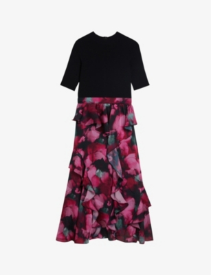 TED BAKER FRARLEY Hazel print dip hem midi dress Black SZ 3 eBay Very well made.