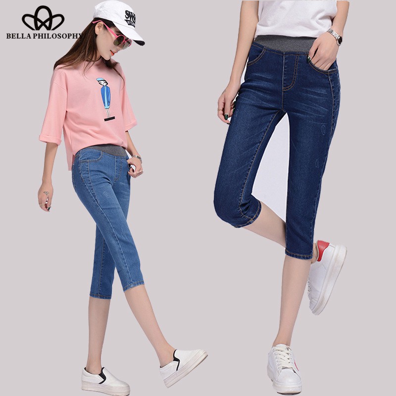 Bella Summer Autumn Women s Elastic High Waist Pants Vintage Skinny Three Quarter Jeans Caual Pants Plus Size Bottoms Very well made.