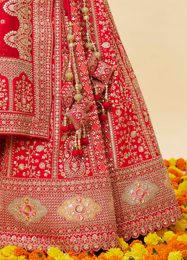 Tomato Red Designer Bridal Wear Lehenga Choli Very well made.