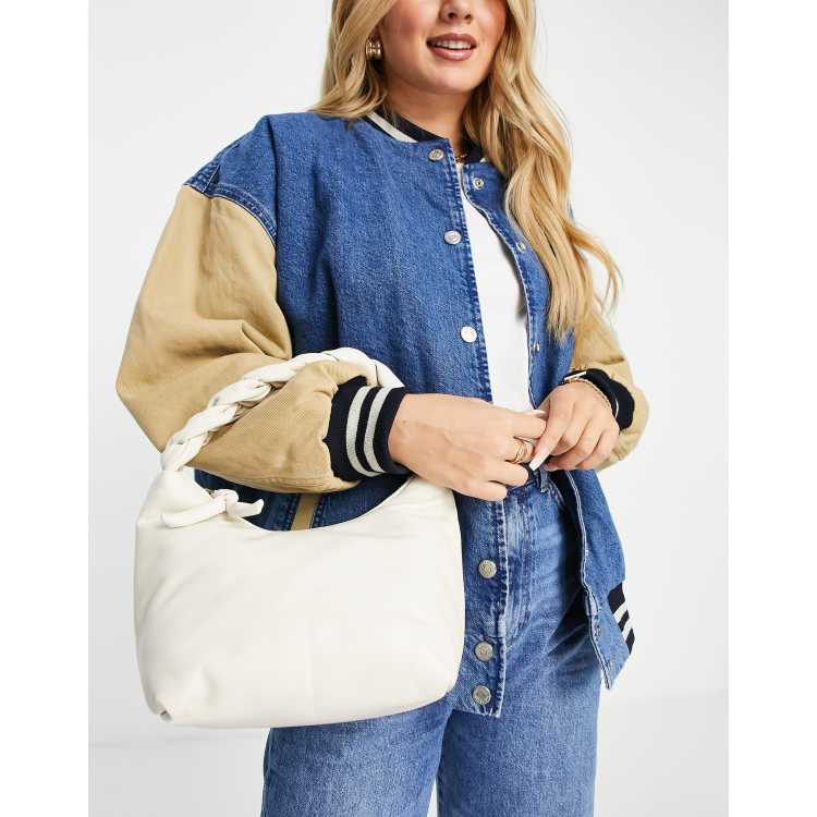 Topshop mini slouch shoulder bag with plait handle in cream Very well made.